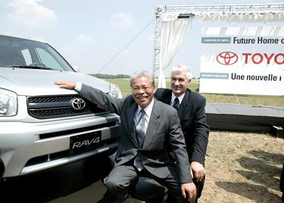 "When we made our proposal to Japan, we first focused on self-reliance," says Real "Ray" Tanguay, newly appointed executive vice president of Toyota Motor Manufacturing North America (TMMNA) and president of TMMC. The company's Texas plant was built on that concept, but the distance between Texas and the company's other truck-making operations in Indiana presented some challenges. In Ontario, he says, "if we could make the distance between the two fairly close, we could use common management in Cambridge, and share some manpower." Self-reliance is TMMC's calling card already, as it operates as a business and not a cost center, reporting dividends directly to Japan and monitoring its own cash flow. As such, its headquarters roles include finance, public affairs, IT and logistics. The greenfield assembly plant in Woodstock Canada's first in 20 years, and 24th overall will manufacture 100,000 RAV 4 sport utility vehicles when it opens in 2008. It will be constructed on a 1,000-acre (400-hectare) site, a parcel two-and-a-half times bigger than the one that's home to the Cambridge facility. Which is one major clue to the automaker's new project planning strategy: creating ample room for supplier operations. The Cambridge plant the only plant outside Japan that makes vehicles for Lexus also makes Corollas and the Matrix crossover SUV. It's seen annual capacity grow from 50,000 vehicles to 288,000 vehicles in 2004, and its footprint has grown to 3 million sq. ft. (280,000 sq. m.) Helping along the Woodstock project will be the equivalents of US$44.2 million from the Government of Canada and US$56.3 million from the Government of Ontario. According to a release from the national government, Toyota looked for help with the project following a January 19 meeting in Tokyo between Fujio Cho, president of TMC, Canadian Prime Minister Paul Martin and Canadian Minister of Industry David Emerson. The radius criterion was 50 km. (31 miles), and Woodstock qualified. Tanguay's team emphasized the synergy that would evolve from having experienced team members and a common management system in place. Finally, duplication could be minimized and assets optimized if such a scheme were followed. By the time visits to the region were paid by such executives as Atsushi Niimi, new senior managing director of TMC; Takeshi Uchiyamada, executive vice president of TMC and even Honorary TMC Chairman Shoichiro Toyoda himself, the feeling was universal. "This location allows us to capitalize on our outstanding operation 40 kilometers [25 miles] away in Cambridge," said Niimi at the project announcement. "Its proximity to suppliers on both sides of the border will benefit both countries and it will mean new opportunities for those suppliers. Jobs will be created across North America." The new willingness of the Ontario and federal governments to play the incentives game played a part as well. "We certainly noticed what they gave other automakers," says Wiseman. "In the past, they were not willing, but now they're quite willing. What Canada is offering these days makes them more competitive."