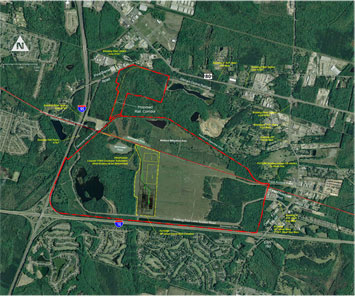 Mitsubishi will produce advanced steam and gas turbines on its Chatham County site (shown in yellow) and will also service turbines and related components for power generation. The Pooler plant will be constructed in three phases (outlined), and will serve the company's customers in North and South America. You can see a larger version of the map by clicking here.