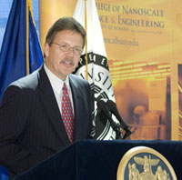 Photo: Empire State Development "When IBM has to decide where it wants to grow, we wanted that answer to be New York," said Avi Schick, president of the Empire State Development Corp. "When they have to contract or lay off, we want that to be elsewhere. And I think that's the commitment we got today." Holding IBM's expansion announcement inside Albany NanoTech underscored one of the deal's central elements. A $3.5-billion, 450,000-sq. ft. (40,500-sq.-m.) complex, Albany NanoTech will be the key research partner in the two IBM projects creating the 1,000 new jobs. And that kind of linkage, Paterson asserted, is an essential element in jump-starting the state's economy. "This is a momentous occasion, and it is a tremendous example of the cooperation between the public and private sector, which is what we're going to need to reignite the engine of this state's economy," the governor said. "This is going to bring to New York what IBM did in the 20th century. This … and so many other companies, acting in public-private partnerships, is going to restore what is really prosperity in New York."