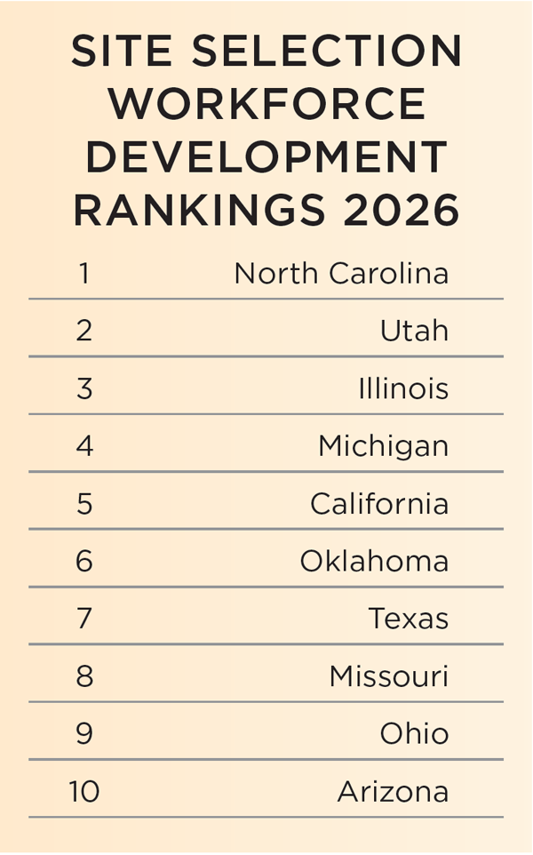 So say the results of Site Selection’s 2026 Workforce Development Rankings, based on an updated index of criteria that, like a good workforce, know how to get after it. We also have introduced more per-capita metrics. Top-performing states hail from all corners of the country.