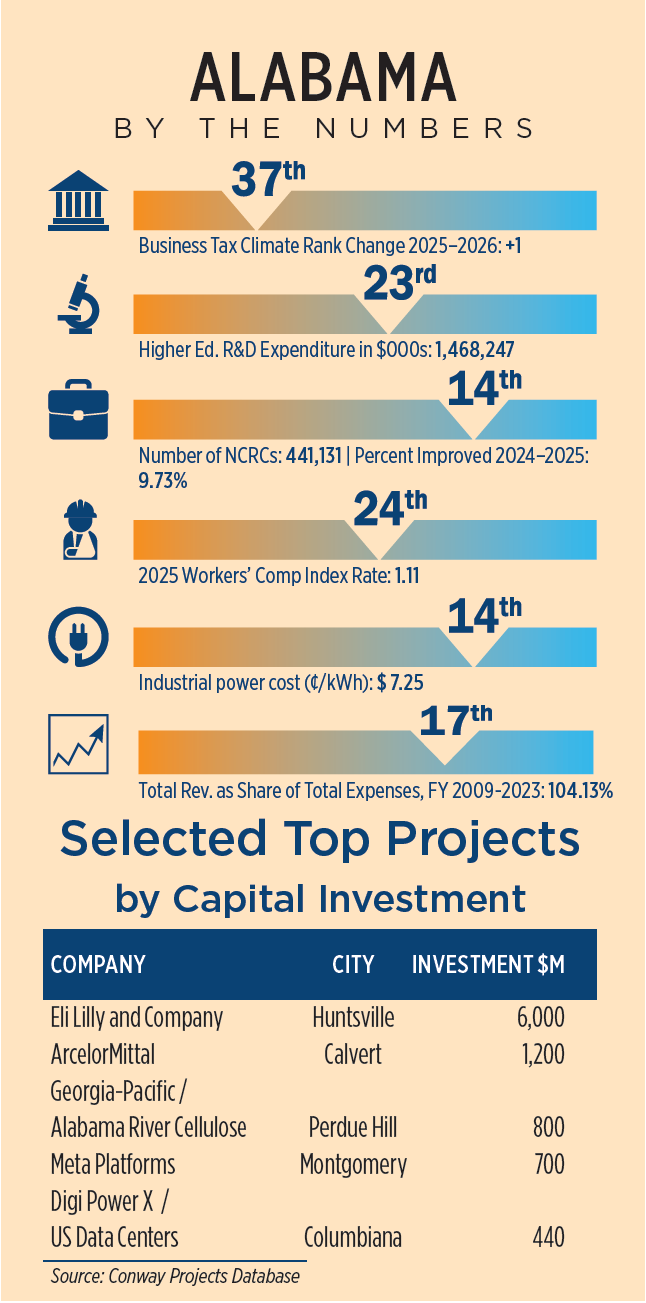 “Major companies across the world already call the state home, and our expertise across multiple industries along with our qualified workforce have established Alabama as one of the top five business climates in the country,” says Ellen McNair, Secretary of the Alabama Department of Commerce.