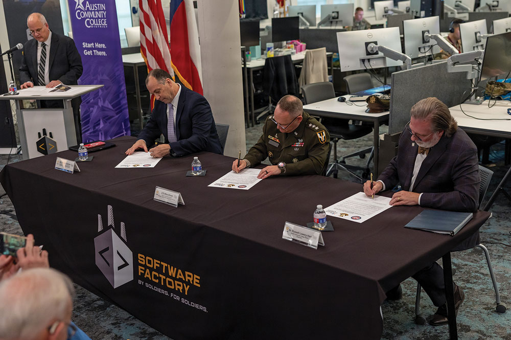 Leaders from the U.S. Army Transformation and Training Command and Austin Community College District in January signed a 10-year academic partnership that the Army said directly fueled “the innovation engine that is the Army Software Factory.”