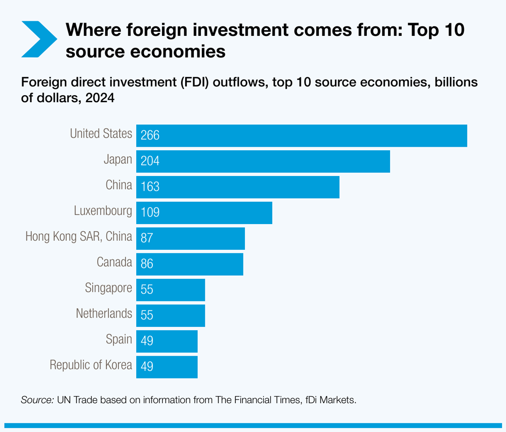 UN Trade & Investment (UNCTAD) released its FDI Explorer in early October, tracking global investment flows. The U.S. continues to be the top economy in both inward and outward FDI, with $266 billion invested outside of the country; Japan and China’s FDI investments in other countries totaled $204 billion and $163 billion, respectively. The U.S., Singapore and Hong Kong were the top three economies receiving FDI ($279 billion, $143 billion and $126 billion, respectively), with the U.S — aided by semiconductor megaprojects — helping North America see an increase of 23% in FDI projects.