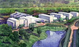 facility and head-quarters in Gaithersburg, Md. One of those companies is MedImmune. CEO Booth says it is no accident that his company chose Gaithersburg for its corporate headquarters expansion. "There is a very good base of technical talent here, with the proximity to the NIH, FDA and the universities," says Booth. "But it also made sense from a corporate real estate standpoint. The price of land, government incentives, public infrastructure and government relationships all were pivotal to this deal." MedImmune selected a 25-acre (10-hectare) site that, upon buildout, will have 750,000 sq. ft. (69,750 sq. m.) of buildings and 2,250 workers. The site's proximity to the federal agencies is a huge plus, says Booth. "Being able to get in your vehicle and drive to the FDA and meet with someone is critical," he notes. "This means that we can communicate with them so that they better understand the needs of the industry. Also, because of our location we have been able to hire a number of people who have been trained at the National Institutes of Health." MedImmune is not alone in the booming world of biotech in Maryland. On June 20, Human Genome Sciences Inc. broke ground in Rockville on the $250 million first phase of the company's new research and development facility and corporate campus. When completed, the new 55-acre (22-hectare) campus will hold several inter-connected buildings totaling up to 1.03 million sq. ft. (95,790 sq. m.) and an 853-space parking garage. Plans include a central building to house Human Genome Sciences' corporate staff and two R&D buildings, which will be used for protein development and clinical production/fill-finish, respectively. Future phases will allow for four additional buildings and one additional parking garage. HGS occupies about 430,000 sq. ft. (39,990 sq. m.) of manufacturing, laboratory and office space in eight buildings in Montgomery County. The company intends to finance the expansion through a synthetic lease with financial support from the Maryland Economic Development Corp. On May 3, Gaithersburg-based TherImmune Research Corp. held a ribbon-cutting ceremony to mark the company's 26,000-sq.-ft. (2,418-sq.-m.) expansion. TherImmune employs 115 people and plans to hire an additional 50 scientific and technical staff within the year. The company provides drug development services to the pharmaceutical and biotechnology industries.