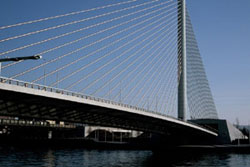 | The cable-tied Meuse River Bridge in Liege was built between 1996 and 2000. |
