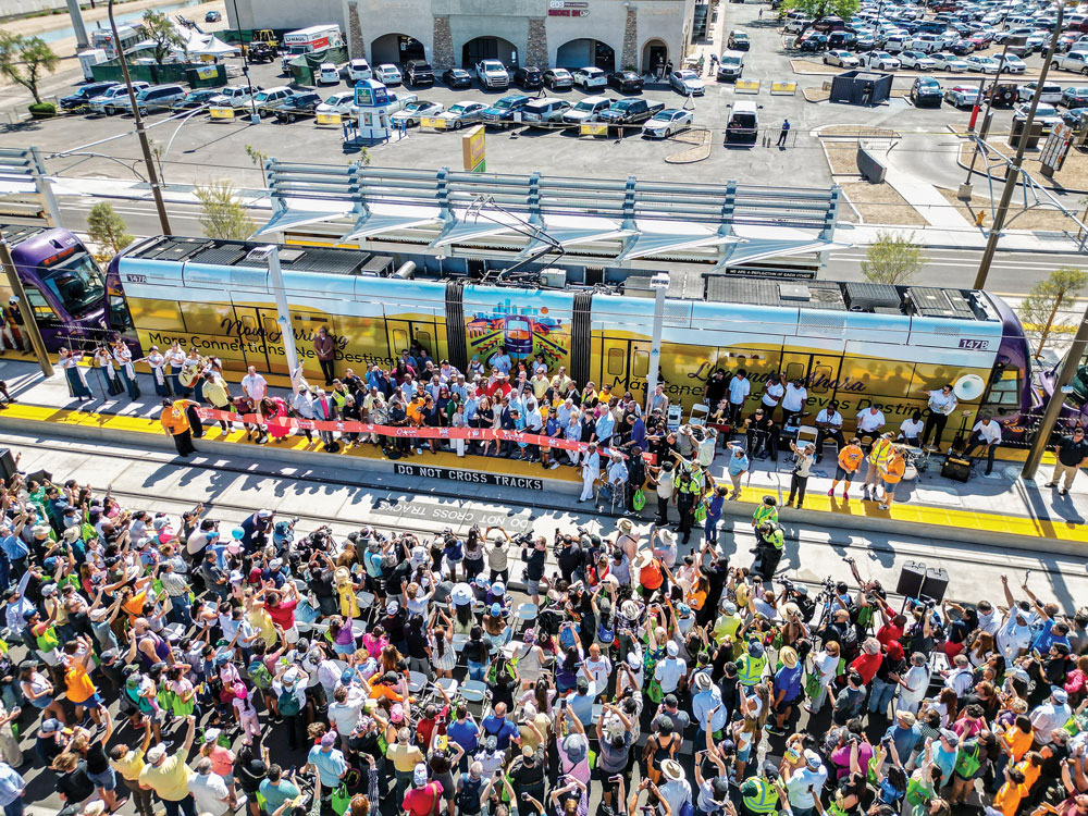 Transit innovation recently took the form of 5,000 people turning out for the June 2025 grand opening of the $1.34 billion South Central Extension/Downtown Hub (SCE/DH) light rail expansion in Phoenix by Valley Metro Rail. The 5.5-mile extension marks the system’s evolution to a 35-mile two-line rail system.