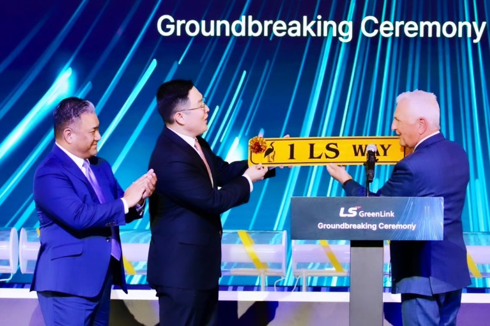 Chesapeake Mayor Rick West presents a street sign to executives from LS Cable & System. In December, the company announced a $689 million project expected to be the single largest capital investment in the history of the Hampton Roads region and create over 430 new jobs making copper wire products and rare earth magnets. The project is the company’s second investment in the region after a $681 million, 330-job project to make cable.