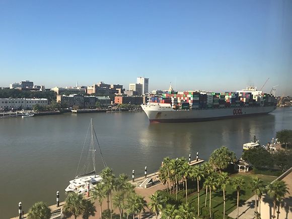 Site Selection Vice President of Publications and Editor in Chief Mark Arend made this photo last week of a ship leaving the Port of Savannah and passing the city’s historic downtown waterfront on its way to the Atlantic. Watch for full coverage of ports and free trade zones in the next issue of Site Selection.