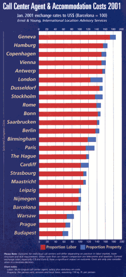 The call center market in Europe and elsewhere is booming, with double-digit growth annually. According to the market research firm Datamonitor, there are presently some 12,600 call centers in Europe, a number estimated to increase to 17,900 by 2003. In addition, Datamonitor predicts that the number of centers dealing with Internet-related issues will grow from 400 in early 2001 to 3,400 during that same time span. For the businesses planning to expand their call center presence, weighing the pros and cons of the traditional strategies for doing so is time well spent. The Rise of the Pan-European Model Prior to the mid-1990s, entry into the European call center market involved a country-by-country approach that was limited in application and expensive to implement. These were depressed economic times in Europe. But in the mid-90s, a number of European national telecom companies began to see great potential in call centers. The European economies were lagging far behind the U.S., and unemployment averaged in excess of 10 percent across the continent. Call centers, as a labor-intensive industry, could provide tremendous inward foreign investment funds and a source of employment for the well-educated, but underemployed work force.The time was right for call center development. It now became feasible to field calls from anywhere in Europe at virtually any location. So the telephone companies, who stood to benefit directly from increased telecoms usage, and economic development agencies joined forces to promote call center development, and in particular, pan-European call centers. The pan-European model for call centers involves a single center developed to handle customer contacts--inbound, outbound or both--between a company and its customers and prospects. Calls to or from any country in Europe are handled by agents fluent in that language, with a single management team, at a single location. "In 1994, pan-European was really the only way to address the market," says Art Coombs, president and CEO of Echopass, a call center information technology (IT) hosting firm. In the late 1990s, Coombs was one of the most high-profile multilingual call center managers in Europe, managing a pan-European technical support center for Sykes Enterprises in Amsterdam. "There was no economy of scale in any other scenario. It didn't make sense financially, in terms of bandwidth or IT to set up more than one center. Costs in a call center are not linear," he adds. "In other words, if it costs US$2 million in IT infrastructure to put a 500-seat center together, then your IT costs are $4,000 per seat. But you can't put a 50-seat center together for $200,000. There are fixed costs that don't let the equation balance." Onno Ponfoort, Area Director of the New York office for the Netherlands Foreign Investment Agency expands on the advantages of the pan-European call center scenario. "In a pan-European model, there are scale and scope advantages, in that more knowledge- and administration-related tasks can be executed at a lower average cost," Ponfoort explains. "A broader knowledge base can be built and maintained. And a pan-European center allows the entire organization to acquire market knowledge more quickly and easily as opposed to gathering that information piecemeal, center by center. "In addition," he adds, "as labor costs (often 65 percent of the total) and real estate costs (10 percent of total costs) differ from country to country, implementing a pan-European approach in a lower-cost environment can save a lot of money." ![]() One of the biggest problems to the pan-European model is that not every location is well-suited for establishing a pan-European call center. The Netherlands and Ireland were early leaders in the chase for call center investment, and they took different approaches to solving the needs for pan-European centers. Ellen Oude Lashof, a representative of KPN Royal Dutch Telecom, offers this synopsis of the traits necessary for a successful pan-European call center. "In The Netherlands, all of the factors for success were in place. There is a high quality, multilingual labor market--many Dutch speak two, three or four languages--a very cost-effective and modern telecom infrastructure, flexible labor rules and tax regulations, and a general call center readiness. Les Docks is a monumental facility... 365 meters long, seven storeys high, with four main sections. It is the heart of the Marseille-Euromediterranee urban redevelopment project. Six years ago, the building was nearly empty. Today it is nearly overflowing with telecom-related companies. US Group Protection One has a cell center in the building as does Teleperformance, one of the largest call center outsourcers in the world and C-Votre-Sante (It's Your Health), which is a web site and call center providing health care information. Three buildings are under renovation currently, to house telecom and internet activities for Morgan Stanley, Markely Stearn and Louis Dreyfus Communication, a call center hotel. (Photo © PP -- Hugo TOLILA.)