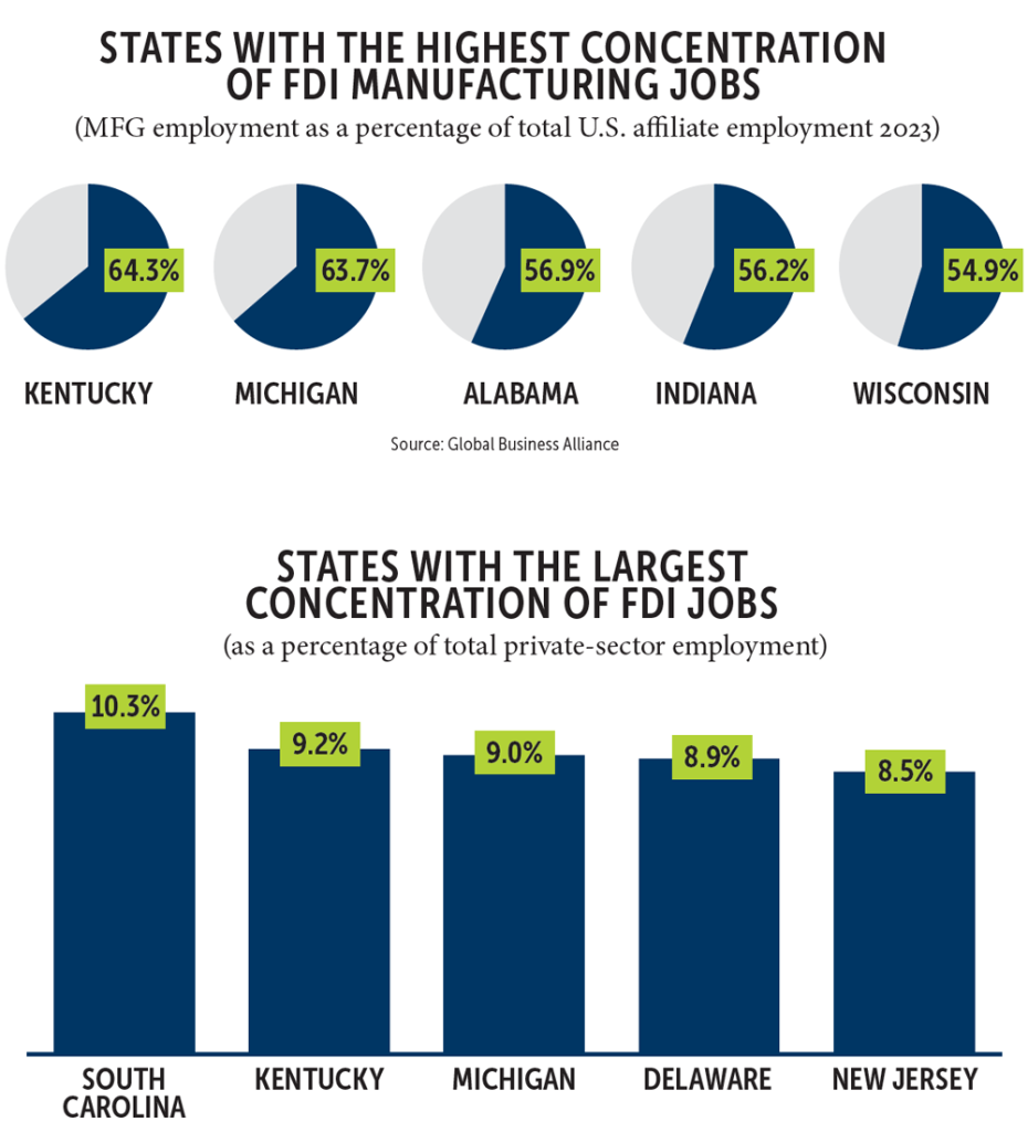 How do we know this? The proof is in the performance. According to the most recent FDI rankings, Kentucky places first in the U.S. for FDI as a percentage of manufacturing employment (64.3%) and second across all FDI employment sectors.