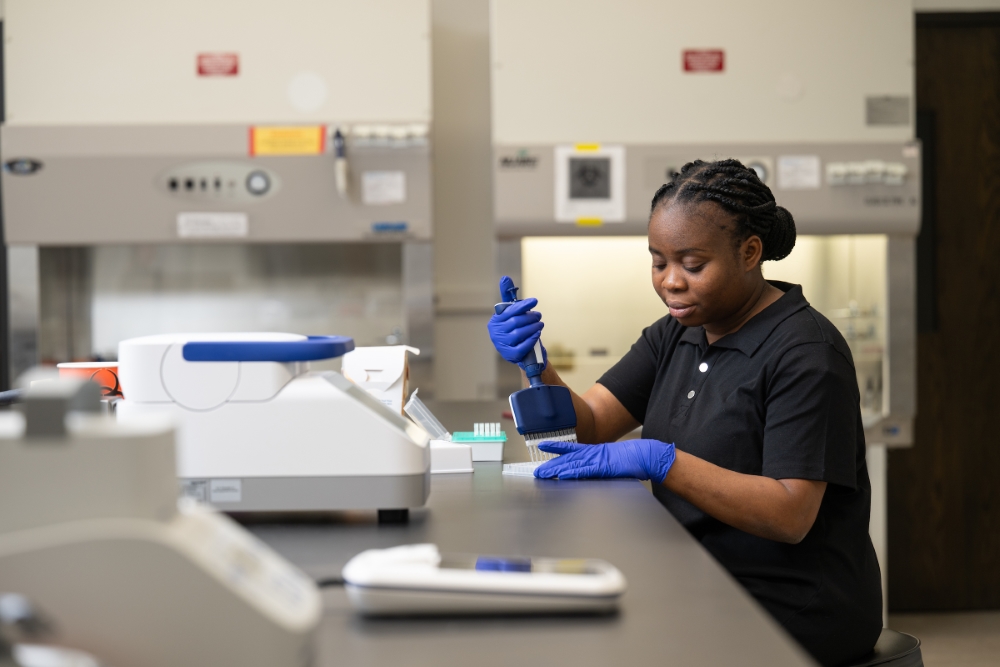 Hoselton notes that experiential learning is embedded throughout the curriculum. Students participate in course-based undergraduate research experiences, applied laboratory courses and collaborative projects with industry partners, giving them exposure to the tools and technologies used in modern bioscience companies.