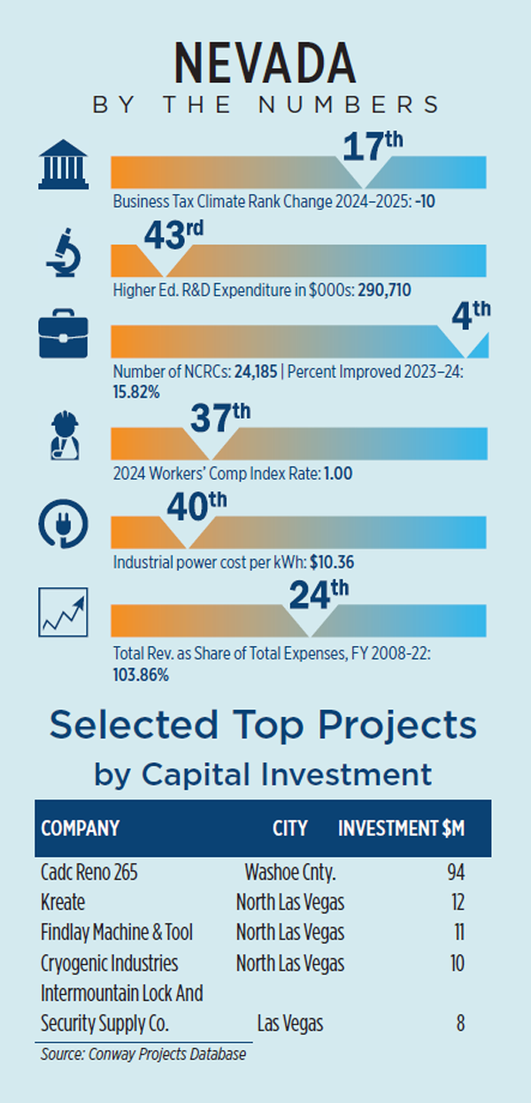 When The Boyd Co. Location Consultants polled leaders at Fortune 1000 companies in the western U.S. in March for its 2025 Site Selection Leading Indicator Poll TM, they rated Nevada No. 1 among 11 western states when it comes to tax and business climate and No. 3 (behind Texas and Arizona) in terms of that business climate placing Nevada on a list of potential corporate relocation options.