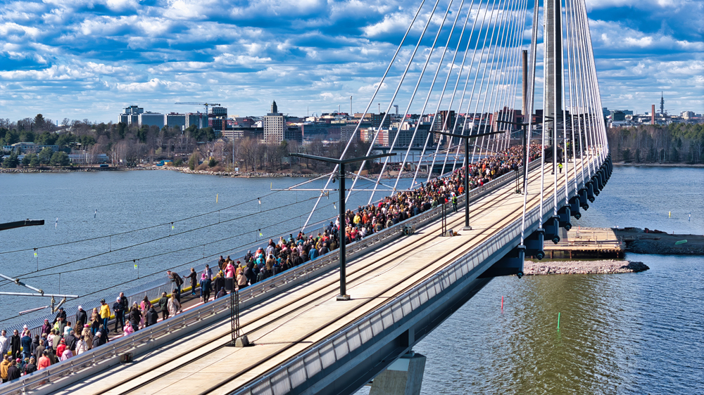 The longest and tallest bridge in Finland opened on Saturday, attracting over 50,000 visitors and nary a car in sight.