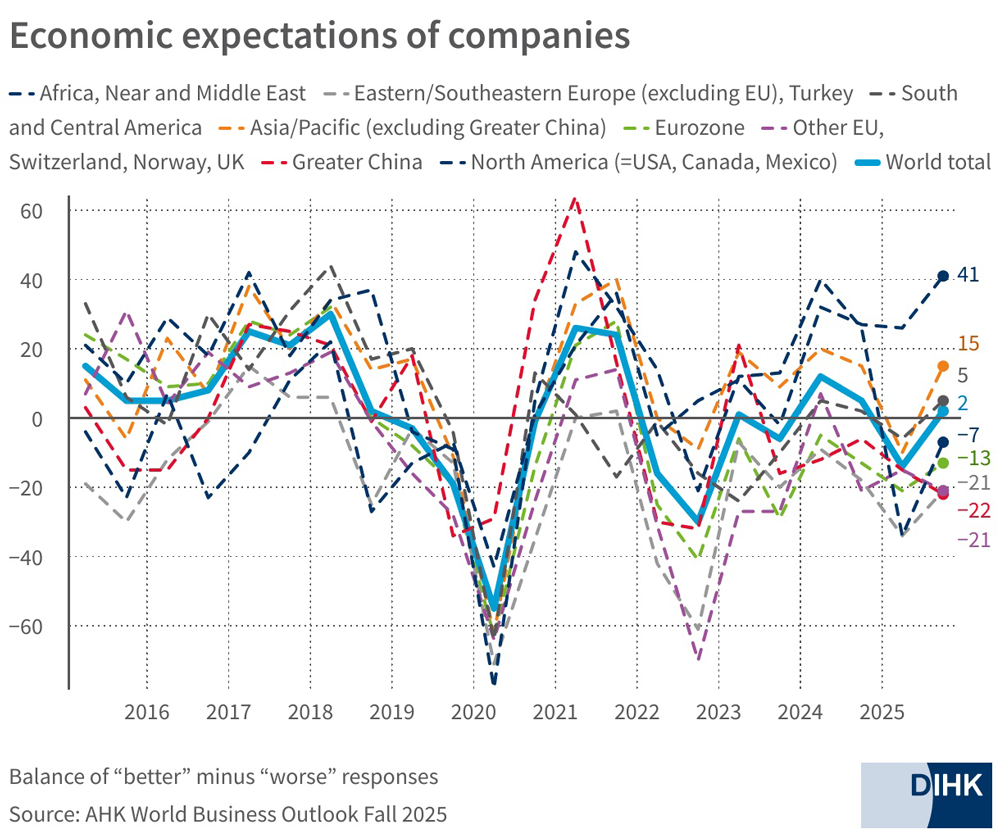 The German-American Chamber of Commerce this month highlighted findings from the AHK World Business Outlook report by the German Chamber of Commerce and Industry (DIHK), based on more than 3,500 responses from companies in around 90 countries worldwide.