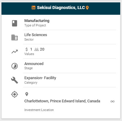 Sekisui Diagnostics has announced plans for expansion of its manufacturing facility in Charlottetown, Prince Edward Island, Canada. The company will invest $1 million and create up to 20 new jobs to expand its chemical diagnostics capability. Sekisui Diagnostics is headquartered in Lexington, Massachusetts, and part of the Sekisui Chemical Co based in Tokyo, Japan.