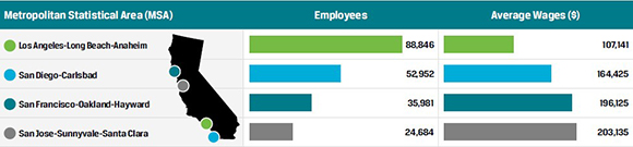 California Life Sciences Employment and Average Wage by Top Four MSAs, 2020