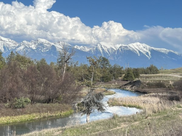 Site Selection Publisher and Director Laura Lyne made this photograph late in the afternoon of April 14 along Mission Creek in the National Bison Range in Montana, looking eastward toward the Mission Mountains.