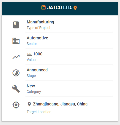 The Japanese firm JATCO Ltd has announced that it will establish a second automatic transmission plant in the Economic and Technological Development Zone in Zhangjiagang City, Jiangsu Province, China. The new production plant will employ 1,000 people and manufacture vehicle transmissions. Production is expected to start at the end of 2019 and produce 480,000 units. JATCO manufactures a range of continuously variable transmissions (CVT) for small to large vehicles.