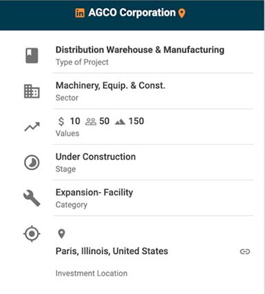 According to several news sources, Fortune 500 agricultural equipment company AGCO is looking to hire welders, assemblers and machine operators for a 50-job, 150,000-sq.-ft. expansion of its operation in Paris, Illinois, located 12 miles north of I-70,