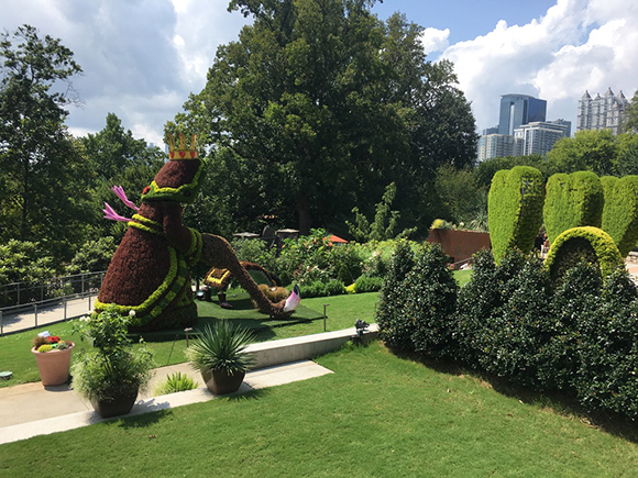 On his first foray to downtown Atlanta in many months with his family yesterday, Managing Editor Adam Bruns snapped this photo of the Queen of Hearts playing croquet with a flamingo mallet, part of the “Alice’s Wonderland Reimagined” exhibit at the Atlanta Botanical Garden located at Piedmont Park.