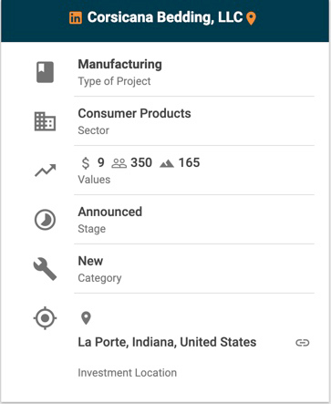 As we noted when covering the HQ move of Serta Simmons to Atlanta, there’s probably no more cumbersome household item than a mattress. Hence the appeal of the mattress in a box. Corsicana Mattress, based in the Dallas-Ft. Worth metro area since its founding in 1971, has 10 facilities nationwide, and is about to add No. 11, as it announced this major mattress-in-a-box production facility in the northwest Indiana community of LaPorte. According to the NWI Times, the company chose LaPorte because of the city’s proximity to both foam suppliers and logistics companies, reducing freight costs. It already knew the region: The company operates a traditional mattress facility in the southwest Chicago suburb of Aurora, just over 100 miles to the west.