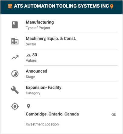 Among the projects Conway has tracked in Canada over the past year is a multimillion-dollar expansion at ATS Automation Tooling Systems’ Cambridge headquarters that will add 122,000 sq. ft., including 67,000 sq. ft. of new manufacturing space and a new innovation center. The expansion is adding 120 positions to a company that already employed 1,270 as of last fall. “Founded in 1978, ATS Automation has about 4,400 employees around the world and had revenues of $1.25 billion in its most recent fiscal year,” Waterloo EDC reported last fall. The company’s automation solutions are used in a wide variety of applications, including food and consumer products, transportation, energy and more. This expansion at the company’s headquarters is part of a $60 million initiative that will see investments in ATS Automation’s assets around the world.”