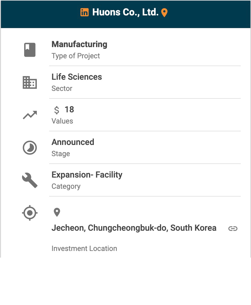 healthcare company Huons will invest about 24.5 billion won ($18.3