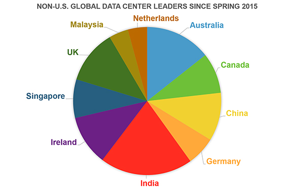Conway Analytics’ latest data on data centers reveals 555 corporate facility investments since spring 2015 — 37 percent of them in the United States. The pie chart shows which countries have the next highest tallies. The leading investors? Facebook tops the list with 20 projects, followed by Equinix and Google with 16 each, then Microsoft and Interxion with 13 each. While we only track half a dozen from Amazon, we continue to hunt down the elusive precise locations of data centers from its omnipresent but secretive Amazon Web Services, whose infrastructure spans 57 Availability Zones in 19 world regions, with announced plans for 15 more Availability Zones and five more AWS Regions in Bahrain, Cape Town, Hong Kong SAR, Milan, and Stockholm.