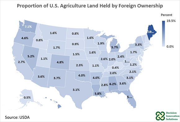 at nearly 19.5%. Foreign ownership of U.S. ag land increased