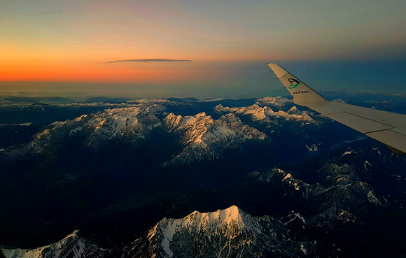 After a week in Atlanta for Conway meetings and a company celebration, Conway staff photographer Sebastian Jug made this image of the Slovenian Alps near the border with Austria as he neared his flight’s destination in his home country of Slovenia over the weekend. |