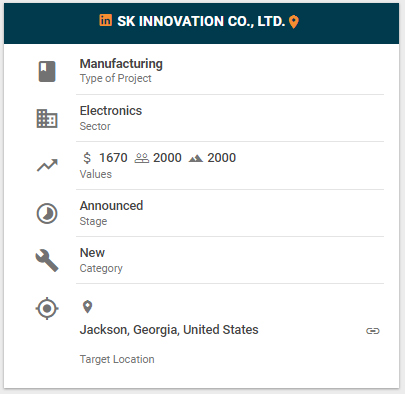 SK Innovation has announced plans to build a new $1.6-billion lithium-ion battery manufacturing facility in Jackson County, Georgia, northeast of Atlanta along I-85. The plant will supply Mercedes-Benz and Hyundai-Kia Motors with batteries for hybrid electric vehicles, with plans to serve more customers in the future. The plant will be constructed in two phases, with each adding 1 million sq. ft. of manufacturing space and more than 1,000 advanced manufacturing employees. SK Innovation is headquartered in Seoul, South Korea, and operates businesses in energy production, batteries, information and electronic materials and chemicals.