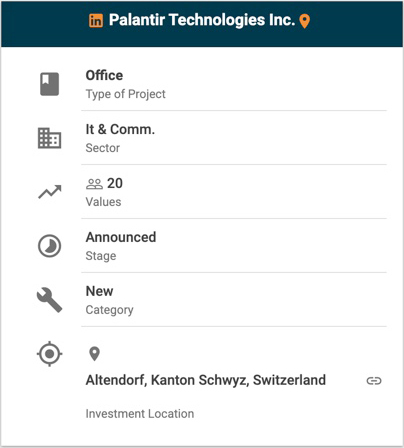 Data analysis, data integration and digital transformation company Palantir Technologies will establish a new European hub in Altendorf, recruiting between 20 and 40 software engineers. The Handelszeitung newspaper reports Palantir will benefit from the tech talent and economy of the canton of Schwyz, as well as proximity to the Zurich region and Zurich Airport. Switzerland Global Enterprise observes that “clusters for health tech, fintech and artificial intelligence have respectively developed in the regions of Pfäffikon, Altendorf and Lachen in recent years. Alongside Palantir, companies such as BASF, Estée Lauder and IKEA have settled in the region.”