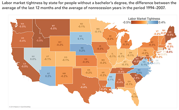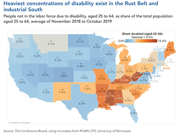 The 85-page study analyzes such factors as less workforce participation among men, continuing reluctance to enter the trades among young people, and alarming disability rates in some states. The District of Columbia, North Carolina, Nebraska and Arizona have the least tight blue-collar labor markets, followed by Virginia, Mississippi, South Dakota and Nevada. (See how The Conference Board’s state-by-state analysis compares and contrasts with Site Selection’s Prosperity Cup and Business Climate rankings, powered by Conway Analytics.)