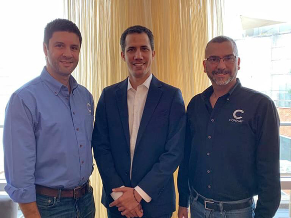 Conway President and Site Selection Publisher Adam Jones-Kelley (r.) and Conway Director for Latin America Bobby Pereira (l.) this week met Venezuelan opposition leader Juan Guaidó, recognized since January as the legitimate interim president of Venezuela by the United States and several dozen other countries. Watch for our exclusive interview with Guaidó in the May issue of Site Selection.