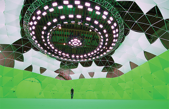 | Intel Studios’ geodesic dome structure near Los Angeles International Airport is outfitted with 96 high-resolution 5K cameras.