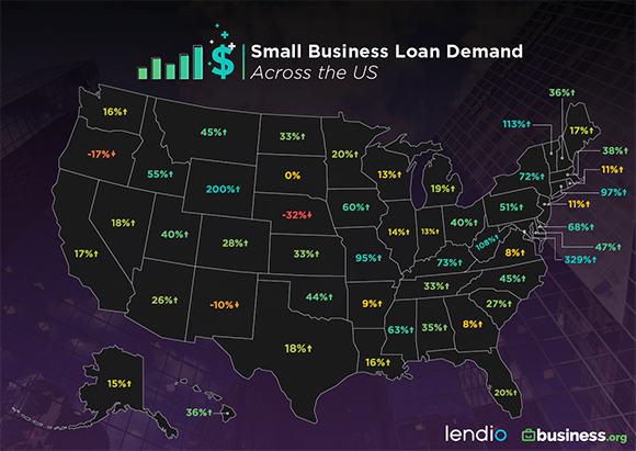 Business.org recently released a report on small business funding growth by state, comparing loan demand from 2018 to 2019 to see how much capital businesses are acquiring and which states are seeing an increase or decrease in business loans. “More people applying for small business loans means more people contributing to your economy,” the organization stated, noting that 71% of businesses borrow $50,000 or less. The report examined average loan size, how much the loan amount has increased over the past year, and the percent increase or decrease in the number of loans funded.