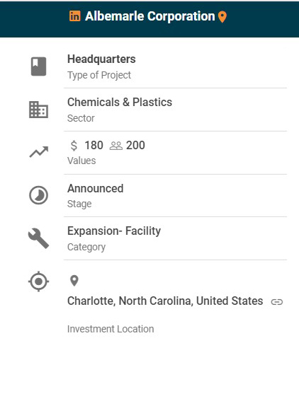 it had selected Charlotte for Albemarle Technology Park, where it will