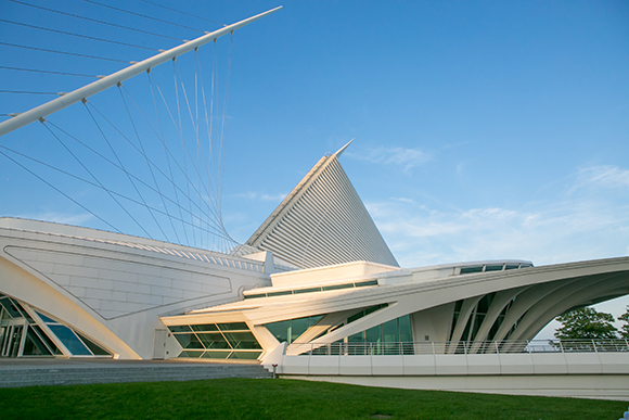 Tate Godfrey, executive director of the Industrial Asset Management Council (IAMC, managed by Conway, Inc.) made this photo last fall during the IAMC Fall Professional Forum in Milwaukee. Comprising three buildings designed by legendary architects Eero Saarinen, David Kahler, and Santiago Calatrava, the Museum’s signature since 2001 has been Calatrava’s Quadracci Pavilion, encompassing Windhover Hall with its vaulted 90-foot-high glass ceiling; the Burke Brise Soleil, a moveable sunscreen with a 217-foot wingspan that unfolds and folds twice daily; and the Reiman Bridge, a pedestrian suspension bridge that connects the museum to the city.