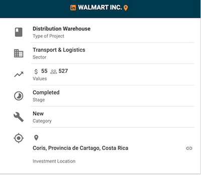 Walmart recently invested $55 million and is hiring more than 520 at a new food distribution center in Coris, in Cartago province in Costa Rica. The 24,000-sq.-m. (sq.-ft.) facility will store and redistribute fruit, vegetable and grains sourced from over 140 local producers. According to the Caribbean Council, Walmart “anticipates a total investment of US$115 million in Costa Rica by the end of 2019 to increase its local outlets and expand its US$68 million distribution center in Coyol (west of San Jose). The investment is considered a vote of confidence from Walmart, which announced in 2017 that it aimed to double the number of its Costa Rican stores by 2023.”