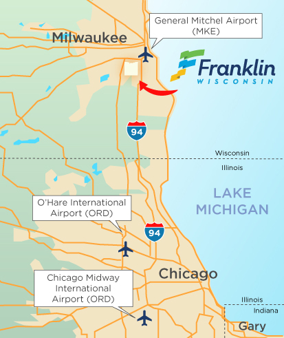 Located on I-94 in the Chicago-Milwaukee corridor just 20 minutes north of Foxconn and 20 minutes south of Lake Michigan Port of Milwaukee; fast-growing Franklin is a spacious and growing city, with thousands of acres near rail and a foreign trade zone, just minutes from General Mitchell International Airport and an hour from O’Hare. These logistical advantages; combined with a favorable tax climate, access to skilled workforce, and our competitive energy costs; make the new 580+ acre Franklin Corporate Park a great fit. Using $15M+ in tax increment financing, Franklin is constructing public water, sewer, roads and amending land to support planned projects totaling more than 1,200 square feet of spec space and creating hundreds of shovel-ready acres for new development. The Franklin Corporate Park will exceed the benchmarks set by the existing 650-acre Franklin Business Park, the most successful park in the history of Wisconsin. Join the ranks of Franklin companies such as Quad Graphics, Ascension Hospital, Carma Labs, and Northwest Mutual – click the image to learn more.