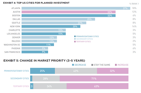 U.S. cities for planned investment, led by Atlanta, Austin and Boston.