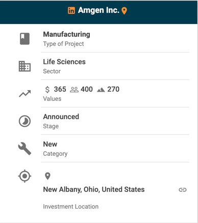 Biotech leader Amgen this week announced plans to invest $365 million to build a new 270,000-sq.-ft. manufacturing facility in the Greater Columbus region city of New Albany, Ohio, creating 400 new jobs upon opening with an expected total payroll of $40 million. “We are adding this additional assembly and packaging plant to our global supply chain network to support the anticipated growth in demand for Amgen medicines,” said Amgen Executive Vice President of Operations Esteban Santos. “We plan to include some of our most advanced digital automation technologies in this new location as we partner with the thriving business community of the Columbus Region to further expand biotechnology regionally.” Amgen Senior Vice President of Manufacturing Arleen Paulino added, “The vibrant business environment, access to a growing talent pool, favorable operating costs and central location from a logistics perspective were all important reasons behind our decision to locate here.”