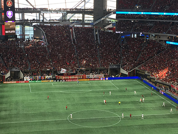 Photo by Adam Bruns Suffering from World Cup withdrawal today? European fans will welcome you to the fold as the UEFA Champions League gets underway. Meanwhile, MLS action continues on this side of the pond (even as some count down the days until the return of American-style football). This photo, taken during Atlanta United’s recent shutout of Orlando City, shows some of the 71,932 fans in attendance June 30th at Mercedes-Benz Stadium in Atlanta, where yesterday the team set the all-time MLS attendance record of 72,243. The stadium will host the NFL’s Super Bowl LIII on February 3, 2019.