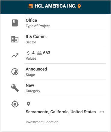 As listed in the latest round of awardees, HCL America, an Americas offshoot of India-based BPO outsourcing and software development firm HCL Technologies, has been offered a $1.35 million California Competes Tax Credit for its planned $4 million, 663-job investment in the state capital of Sacramento. According to the posted tax credit agreement, HCL had 1,701 employees in the state in its 2019 tax year (the basis for the agreement), but had already grown to 1,955 employees by its 2020 tax year. That total is projected to reach 2,364 employees by the 2024 tax year, and the cumulative average annual wage of hired full-time California employees is slated to be $78,220.
