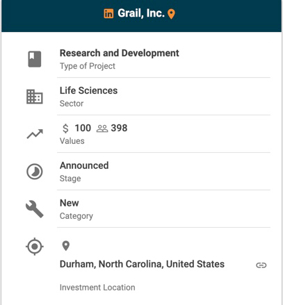 California-based early cancer detection startup GRAIL, identified in Site Selection’s May 2020 feature on health tech as the most well-funded U.S. digital health startup, decided in June to use some of that cash. The company will invest $100 million and aim to create 398 jobs at a new lab, office and warehouse complex in Research Triangle Park. A Job Development Investment Grant (JDIG) agreement authorizes the potential reimbursement to the company of up to $5.2 million over 12 years if job and investment targets are met. In addition to its HQ in Menlo Park, California, GRAIL also maintains locations in Washington, D.C., and the UK. “We want to thank Governor [Roy] Cooper, Secretary of Commerce Anthony Copeland, and our local Durham partners for their leadership and support of GRAIL’s expansion to North Carolina, known for its large pool of skilled talent and innovative spirit that is critical to the success of our mission to detect cancer early and save lives,” said Uplaksh Kumar, the company’s senior vice president of strategic operations and scale.