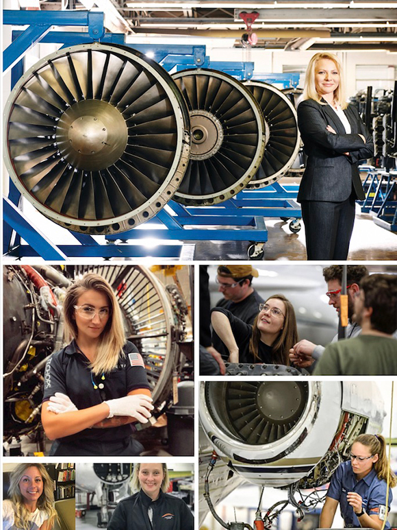 Being ready for that comeback is one factor behind U.S. Transportation Secretary Elaine Chao’s announcement in May of the new Women in Aviation Advisory Board (WIAAB), a 30-member group chaired for former U.S. Air Force Secretary Heather Wilson, now president of The University of Texas at El Paso. Among her board members is Suzanne Markle (top photo below), president and CEO of Pittsburgh Institute of Aeronautics, one of several aviation schools we spoke to last year about, among other topics, underrepresentation of women in the workforce. Female enrollment more than tripled between 2005 and 2019, PIA’s Roxanne Ober told us, but still stood at just 6.4% last year.