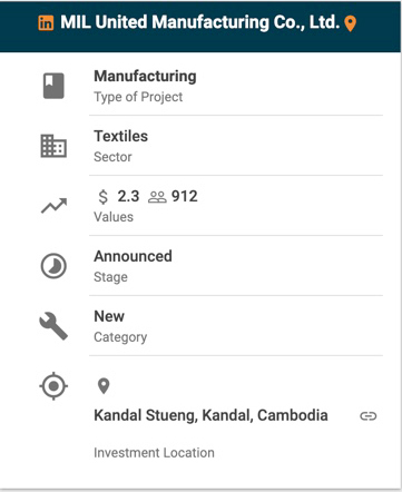 This project was one of three in the textile and garment sector approved by the Council for the Development of Cambodia this spring. Totaling just $7 million in total investment collectively, according to the Council the projects will create nearly 2,000 jobs. Kandal Stueng, a district in Kandal province near Phnom Penh, will be the location of Phnom Penh’s new $1.5 billion international airport. Three Chinese contractors were chosen in January to construct the airport, after the project was approved by the Cambodian government.
