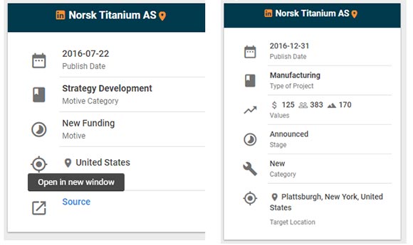 Lead Signal: In June 2016, Norsk Titanium announced the closing of a $25-million funding round to support the development of its U.S. business to produce aerospace-grade, additive-manufactured, structural titanium components.