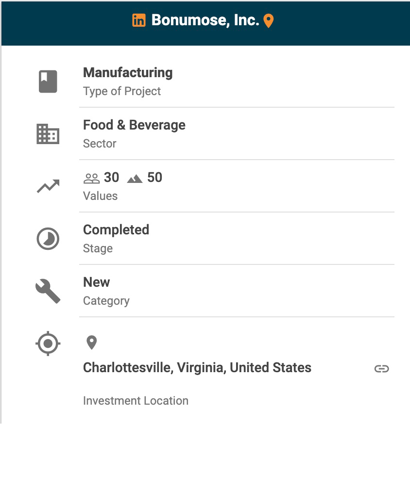 manufacturing facility in Albemarle County, Virginia, Bonumose has