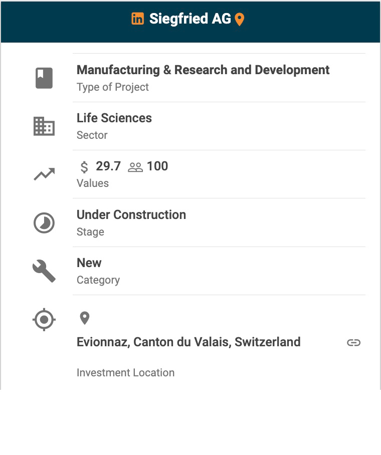 with the company’s R&D Center in Zofingen. The agency said Siegfried